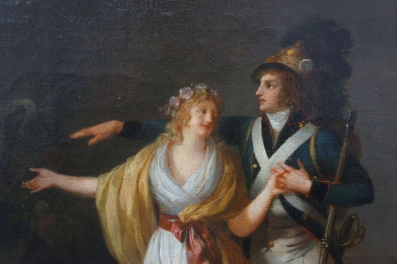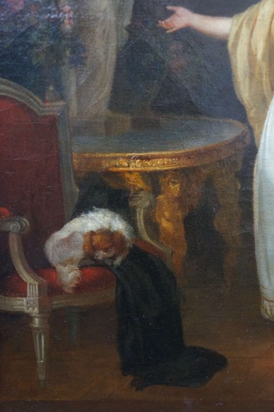 Oeuvre sur toile caractéristique du travail de Schall, exécution soignée des costumes et du mobilier garnissant le lieux de la scène.