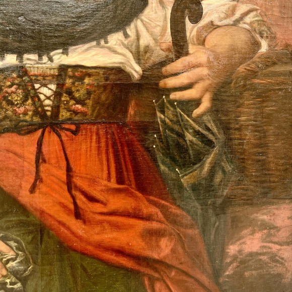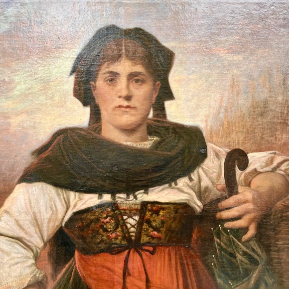 Alsacienne. - huile sur toile - datée 18(7)6 ? monogrammée LPS bas gauche pour Louis-Pierre Spindler (1800-1889) , ce spectaculaire et important portrait est peut être celui d'un membre de la famille de l'artiste.