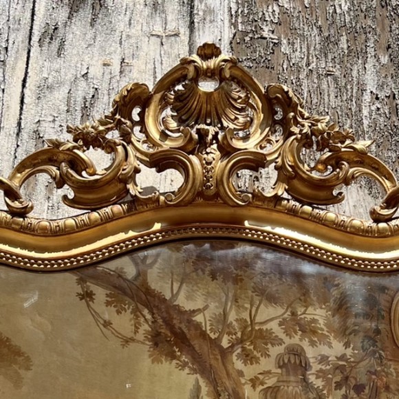 Dimensions idéales pour ce beau miroir Napoleon III Epoque XIX ème en bois et stuc doré, décor de rinceaux coquilles et volutes , belle patine . Dimensions: Hauteur 183cm largeur hors tout 112cm