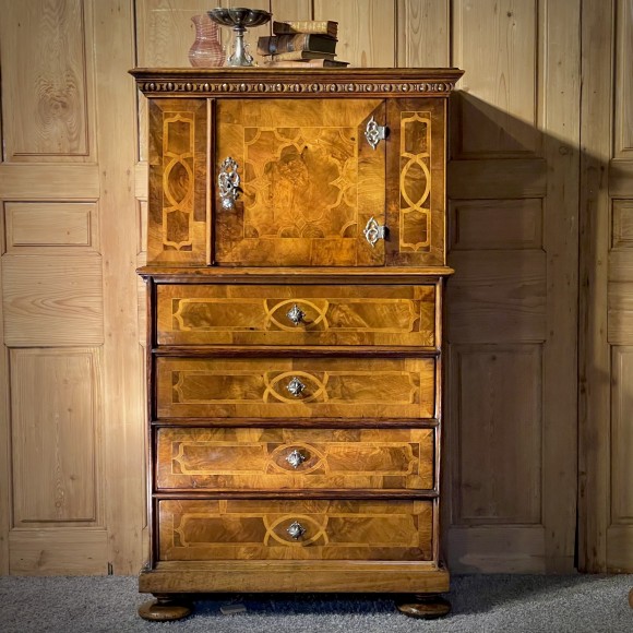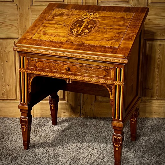 Scriban Italie 18 ème Marqueté Noyer Et Miroir De