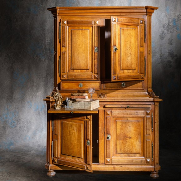 Rare Buffet deux corps noyer Alsace XVIII ème