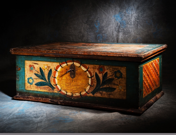 Coffre alsace XIX eme polychrome