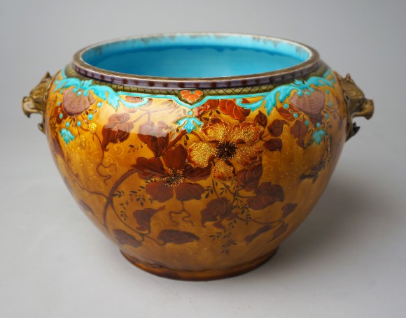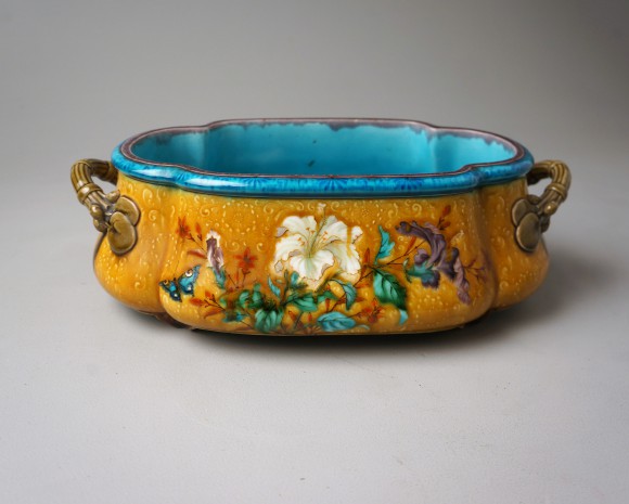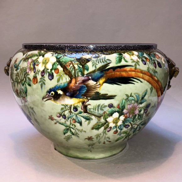 JARDINIERE FOND JAUNE D’OR SIGNEE Th. DECK (1823-1