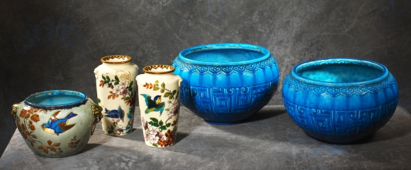 GRANDE JARDINIÈRE CÉRAMIQUE BLEUE THEODORE DECK (1